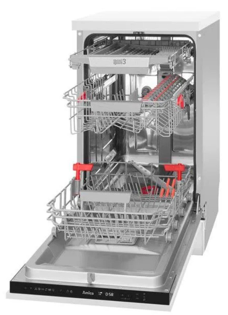 3 nezávislá ramena (horní, střední, spodní) rotují v opačném směru tak, aby byl využit jejich maximální výkon, a tlakem vody zajišťují dokonalé odstranění nečistot z nádobí ve všech koších.