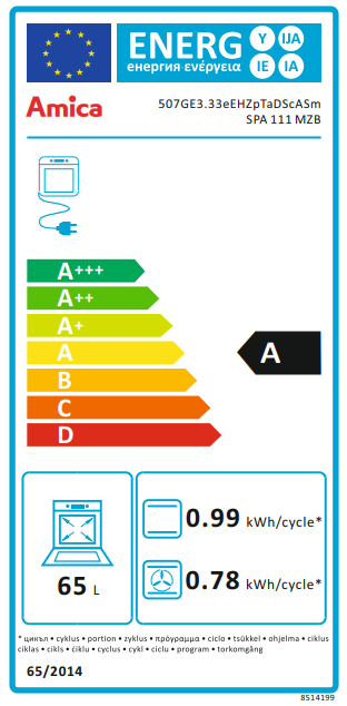 Energetická třída: AŠířka : 50 cmObjem trouby : 65 l