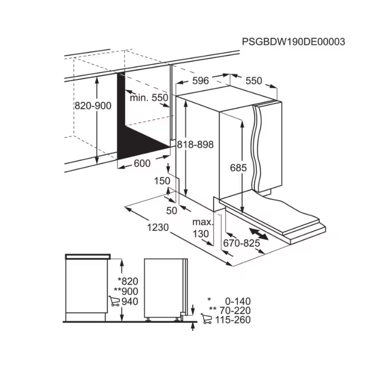• Prostor pro instalaci VxŠxH (mm): 820-900x600x550