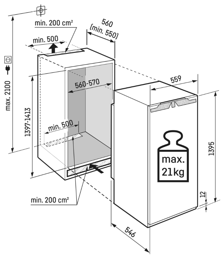 • Max. hmotnost dveří kuchyňské linky: 21kg