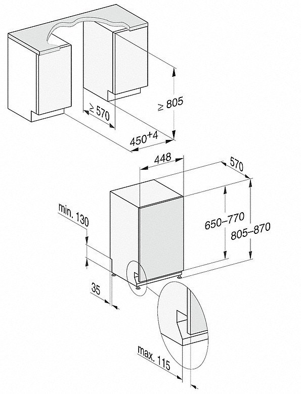• Hloubka přístroje s otevřenými dvířky v cm: 116,5