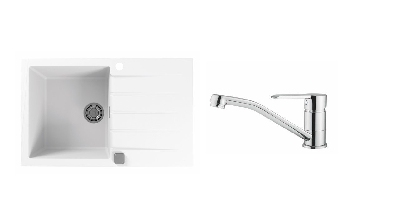 Vestavěný dřez, univerzál. Provedení : granitový dřez s odkapem Vnější rozměr: 790 x 500 mm Rozměr vaničky: 375 x 425 x 200 mm Excentrický sítkový ventil 3 1/2 s přepadem, sifon pro úsporu místa s odbočkou na myčku Úchyty a těsnění pro upevnění dřezu v balení S otvorem pro baterii