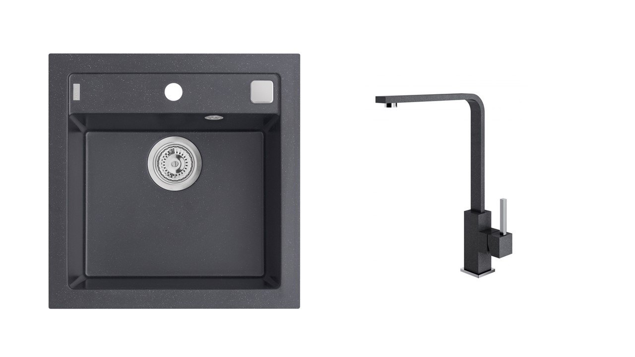 Vestavěný nebo dřez se spodní montáží, univerzál. Provedení : granitový dřez Vnější rozměr: 520x510 mm Rozměr vaničky: 440x350x200 mm Excentrický sítkový ventil 3 1/2 s přepadem, sifon pro úsporu místa s odbočkou na myčku. Úchyty a těsnění pro upevnění dřezu v balení S otvorem pro baterii