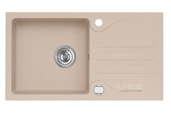 Vestavěný dřez, univerzál. Provedení : granitový dřez Vnější rozměr: 770x430 mm Rozměr vaničky: 380x370x150 mm Excentrický sítkový ventil 3 1/2 s přepadem, sifon pro úsporu místa s odbočkou na myčku. Úchyty a těsnění pro upevnění dřezu v balení S otvorem pro baterii