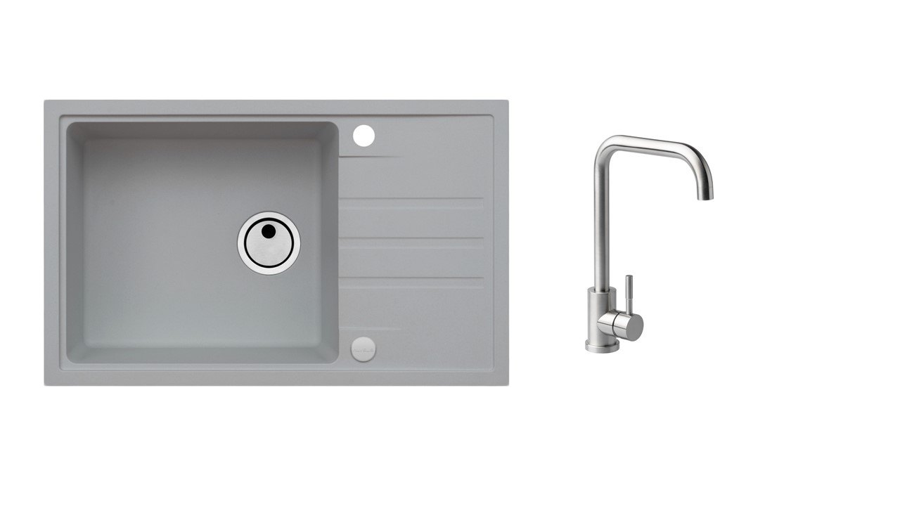 Vestavěný dřez, univerzál. Provedení : granitový dřez Vnější rozměr: 780x480 mm Rozměr vaničky: 460x405x200 mm Manuální sifon 3 1/2 s přepadem, sifon pro úsporu místa s odbočkou na myčku. Úchyty a těsnění pro upevnění dřezu v balení S otvorem pro baterii