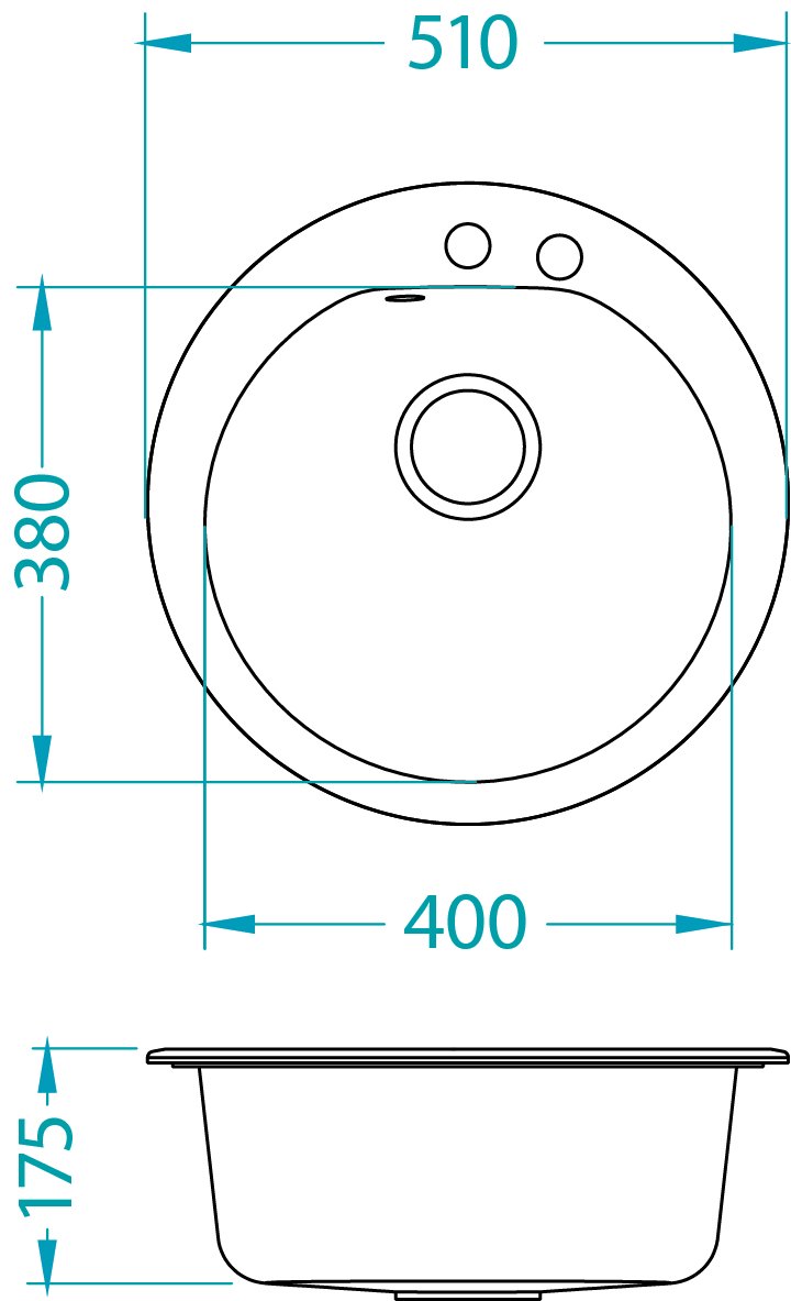 Délka : 510 mmŠířka : 510 mmHloubka dřezu : 175 mm