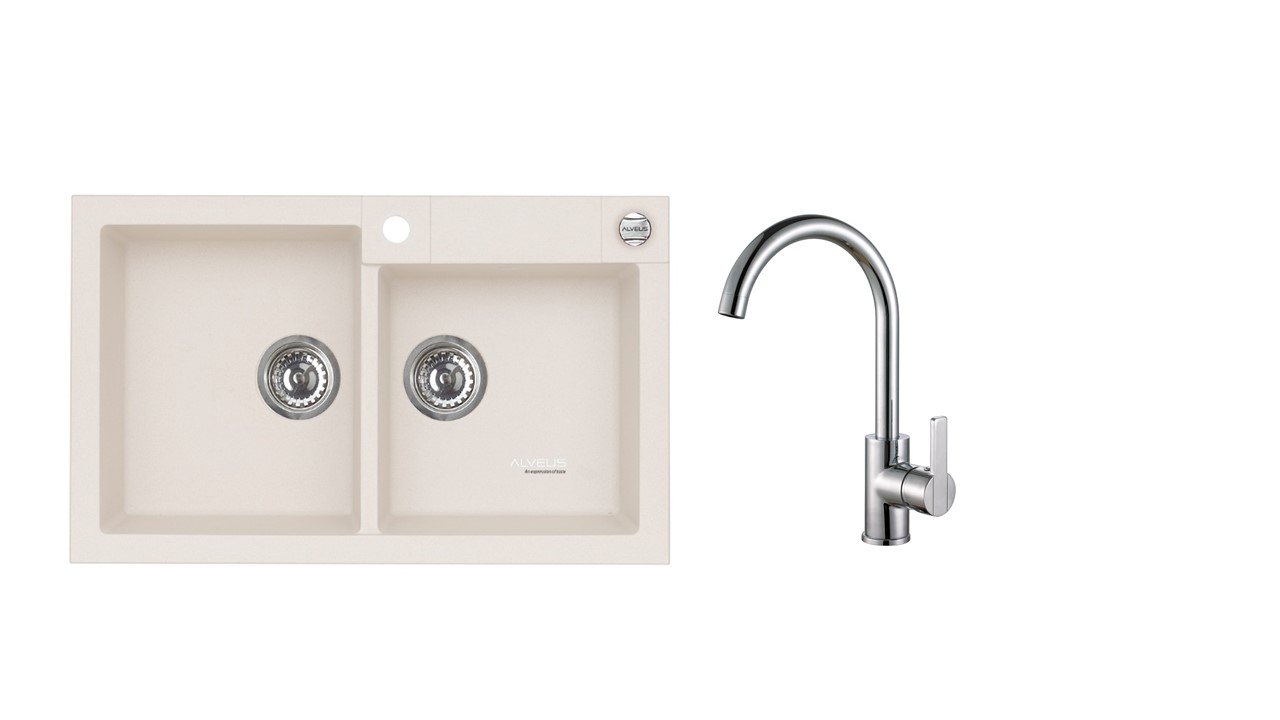 Vestavěný dřez, univerzál. Provedení : granitový dřez Vnější rozměr: 780 x 480 mm Rozměr vaničky: 340 x 400 x 180 mm 340 x 350 x 180 mm Exentrický sítkový ventil 3 1/2 s přepadem, sifon pro úsporu místa s odbočkou na myčku Úchyty a těsnění pro upevnění dřezu v balení S otvorem pro baterii