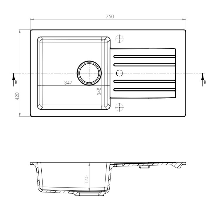 Šířka skříňky od : 500 mmDélka : 750 mmŠířka : 420 mmHloubka dřezu : 140 mm