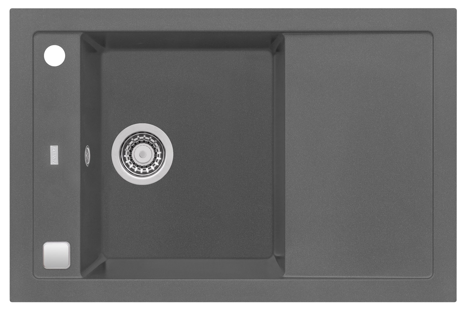 Vestavěný dřez, univerzál. Provedení : granitový dřez s odkapem Vnější rozměr: 595 x 475 mm Rozměr vaničky: 320 x 400 x 160 mm Exentrický sítkový ventil 3 1/2 s přepadem, sifon pro úsporu místa s odbočkou na myčku Úchyty a těsnění pro upevnění dřezu v balení S otvorem pro baterii