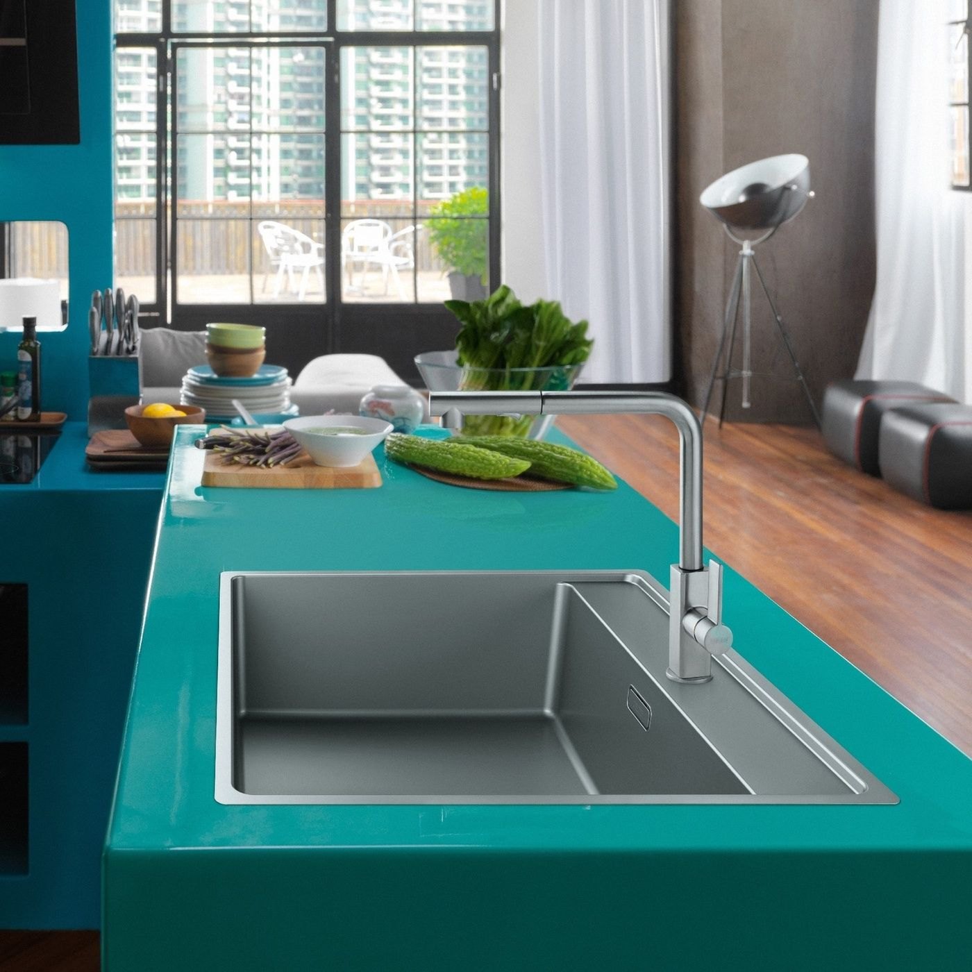 Nerezový dřez Maris. Cena zahrnuje: Sítkový ventil 3 1/2“ s přepadem. Sifon pro úsporu místa 6/4“ s odbočkou na myčku nádobí. Otvor pro baterii ∅ 35 mm. Plochý okraj, Příchytky Fast-Fix.