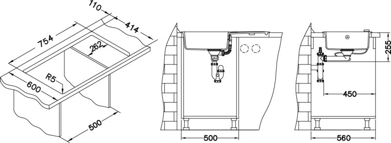 Šířka skříňky od : 450 mmDélka : 600 mmŠířka : 480 mmHloubka : 190 mm