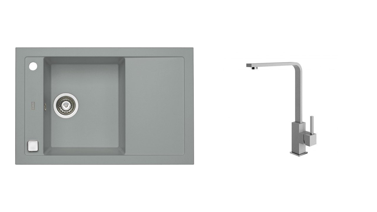 Vestavěný nebo dřez se spodní montáží, univerzál. Provedení : granitový dřez Vnější rozměr: 760x500 mm Rozměr vaničky: 350x420x200 mm Excentrický sítkový ventil 3 1/2 s přepadem, sifon pro úsporu místa s odbočkou na myčku. Úchyty a těsnění pro upevnění dřezu v balení S otvorem pro baterii