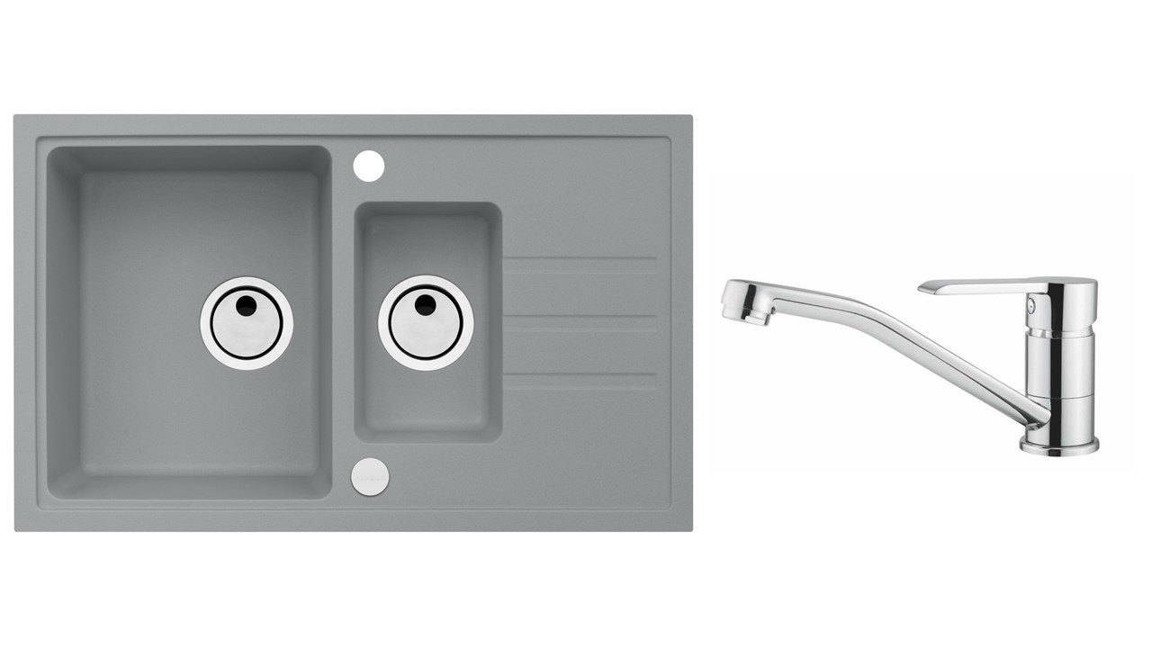 Vestavěný dřez, univerzál. Provedení : granitový dřez Vnější rozměr: 780x480 mm Rozměr vaničky: 330x405x200 mm Rozměr vaničky: 170x275x130 mm Manuální sifon 3 1/2 s přepadem, sifon pro úsporu místa s odbočkou na myčku. Úchyty a těsnění pro upevnění dřezu v balení S otvorem pro baterii