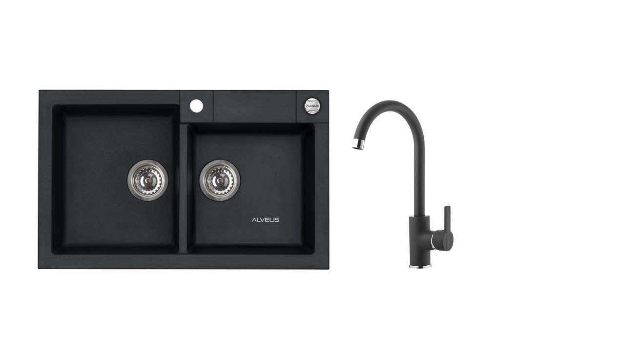 Vestavěný dřez, univerzál. Provedení : granitový dřez Vnější rozměr: 780 x 480 mm Rozměr vaničky: 340 x 400 x 180 mm 340 x 350 x 180 mm Exentrický sítkový ventil 3 1/2 s přepadem, sifon pro úsporu místa s odbočkou na myčku Úchyty a těsnění pro upevnění dřezu v balení S otvorem pro baterii