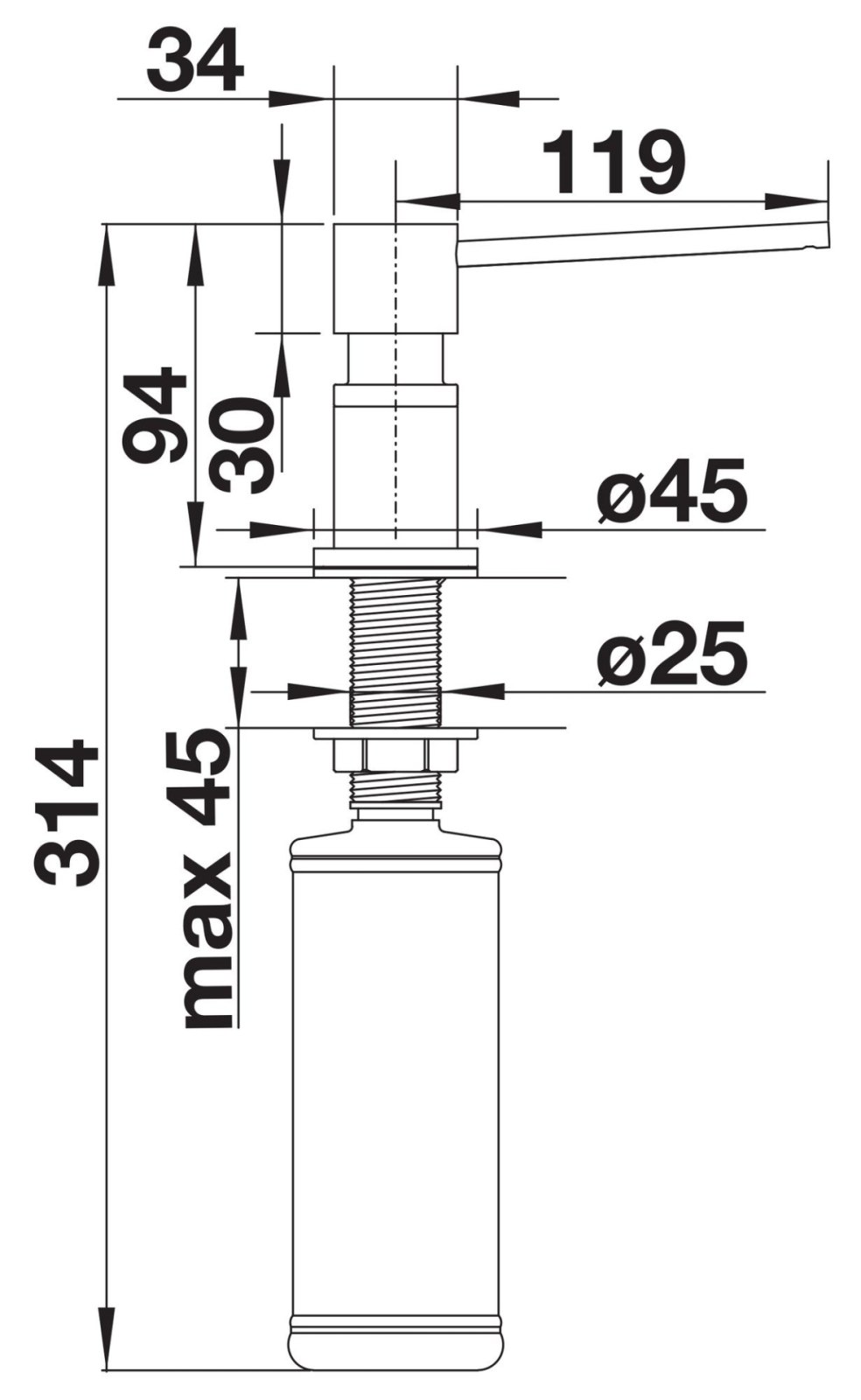 Provedení: Dávkovač saponátuObjem nádržky: 300 mlMontážní otvor: 35mm