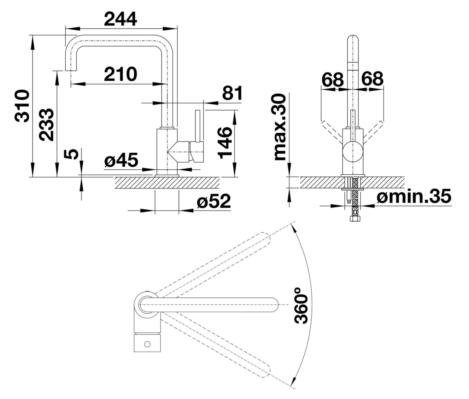 • Rozšířený akční rádius díky raménku otočném v rozsahu 360°