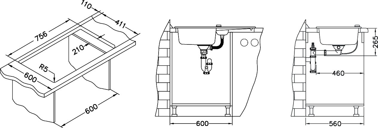 Šířka skříňky od : 600 mmDélka : 780 mmŠířka : 480 mmHloubka : 180 mm
