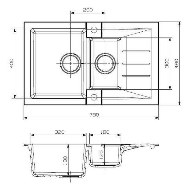 • Rozměr dřezu 780 x 480 mm