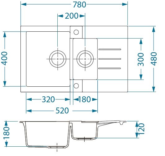 Šířka skříňky od : 600 mmDélka : 780 mmŠířka : 480 mmHloubka : 180 mm