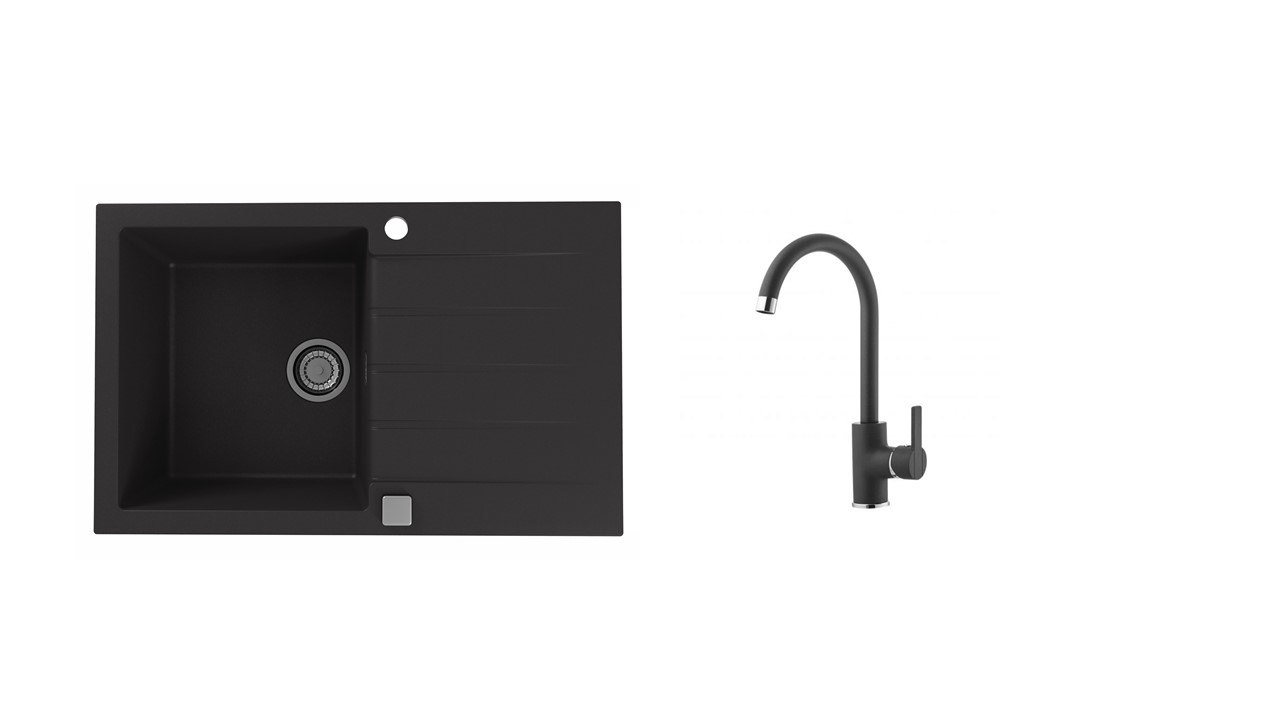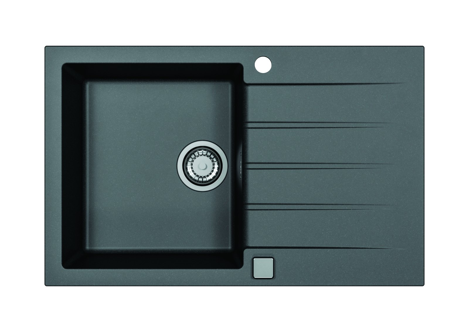 Vestavěný dřez, univerzál. Provedení : granitový dřez s odkapem Vnější rozměr: 790 x 500 mm Rozměr vaničky: 375 x 425 x 200 mm Excentrický sítkový ventil 3 1/2 s přepadem, sifon pro úsporu místa s odbočkou na myčku Úchyty a těsnění pro upevnění dřezu v balení S otvorem pro baterii