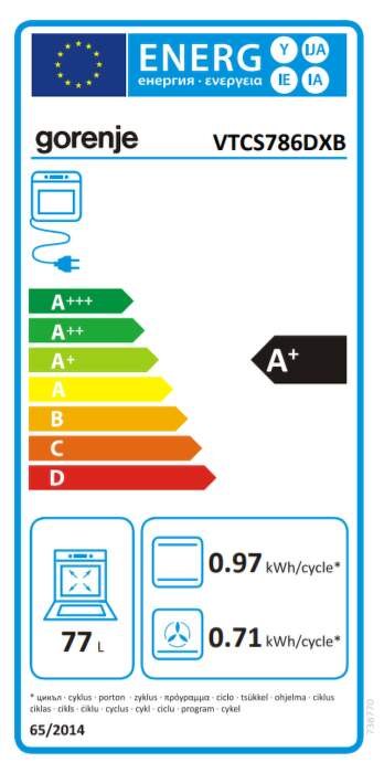Objem trouby : 77 lEnergetická třída: A+