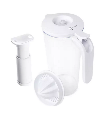 BPA free plastový džbán pro uchovávání čerstvě vylisovaných šťáv a smoothies.