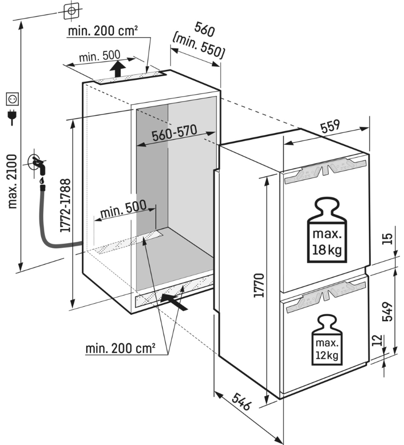 - Rozměry výklenku výška/šířka/hloubka: 177,2 - 178,8 / 56 - 57 / 55,0 cm