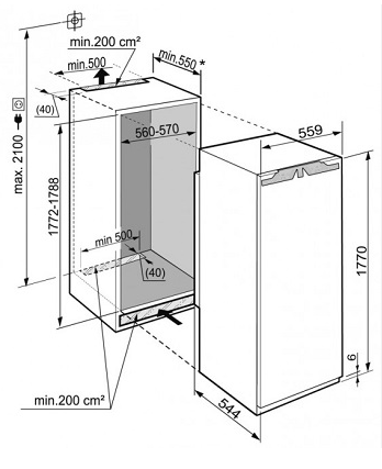 Spotřebiče lze bez problému umístit za nábytkové dveře a tak je perfektně integrovat do sestavy kuchyňského nábytku. Tím vznikne opticky jednotná kuchyňská linka. Za povšimnutí také stojí dvě odlišné řešení montáže dveří nábytku. Montáž s pevným uchycením dveří: Dveře nábytku jsou instalovány pouze na dveře spotřebiče, na kterých spočívají svojí celou hmotností. Dveře nábytku nejsou montážně spojeny pomocí pantů s korpusem skříně. Montáž s pohyblivým uchycením dveří: Dveře nábytku jsou upevněny pomocí pantů přímo na korpus skříně a s dveřmi spotřebiče jsou spojeny pouze vodicí lištou. Při otevírání a zavírání se nábytkové dveře pohybují po této liště ve vzájemném souladu se dveřmi přístroje. Hmotnost nábytkových dveří je nesena hlavně panty korpusu.
