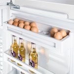 Roztažitelné provedení univerzálního regálu na vejce umožňuje bezpečné skladování 20 slepičích nebo 28 křepelčích vajec. K prodloužení životnosti vajec doporučujeme uchovávat je zašpičatělým koncem dolů nebo umístit regál pro vejce do FlexSystému zásuvky BioFresh.