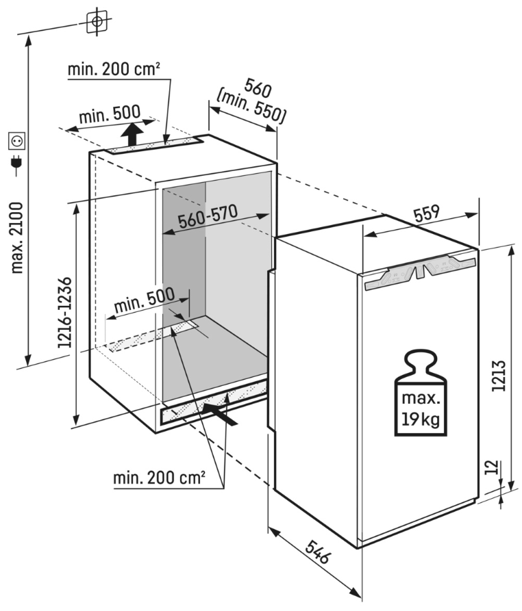- Max. hmotnost dveří kuchyňské linky: 19 kg