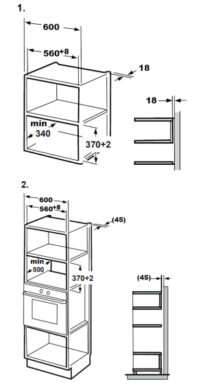 • Výška pro zabudování 38 cm
