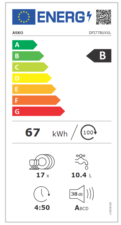 • Spotřeba el. energie/cyklus - program Eco 0.67 kWh