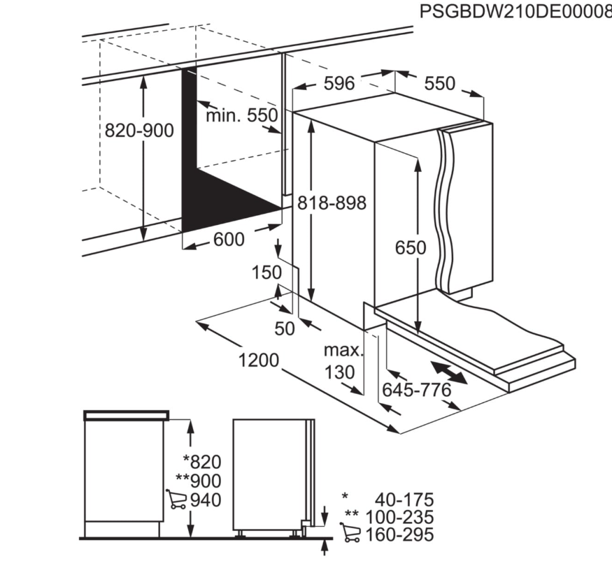 Výškově nastavitelný horní košík, dokonce i při plném naložení ano