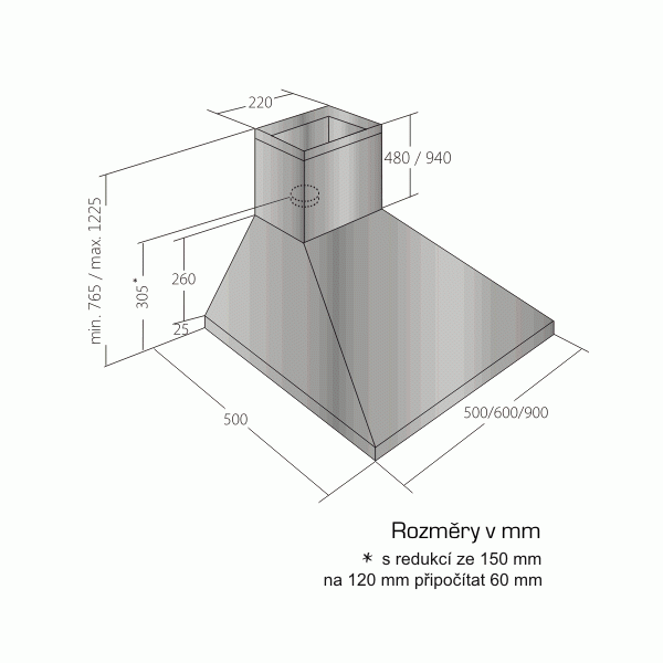 • Výška k vrcholu příruby: 305 (pr. 150) / 365 (pr. 120) mm