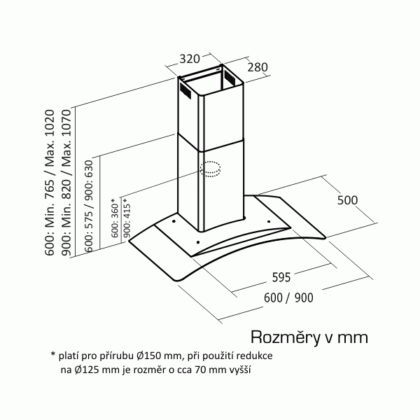• Průměr odtahu: 125 mm