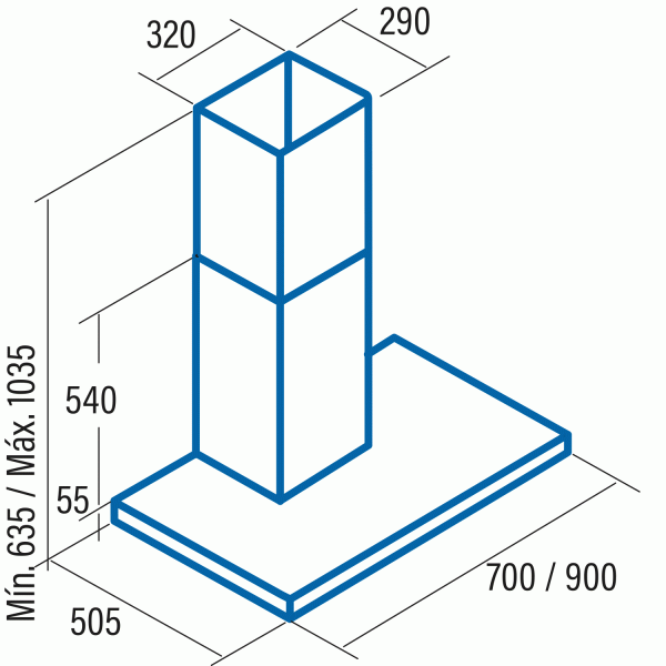 • Min. výška nad plynovou deskou: 750mm