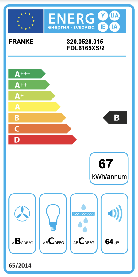 Komínový odsavač par Linfa New. Provedení nerez. Energetická třída B. Tlačítkové ovládání. 3 Stupně výkonu. Intenzivní stupeň. Sound Pro.
