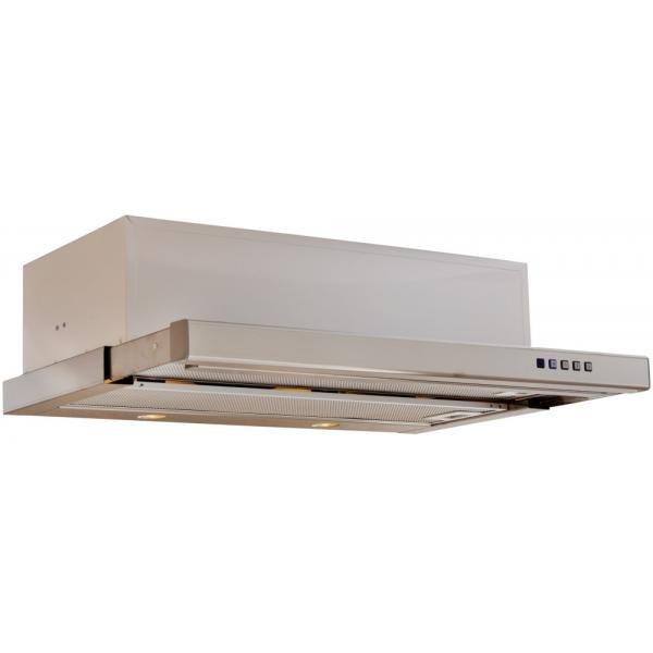 Vestavná digestoř výsuvná Šíře 50 cm, nerez s nerez lištou (bílý korpus), max. výkon 725 m³/h (5 Pa), hlučnost Lw 51 – 69 dB(A), 3 rychlosti, odsávací jednotky mají individuálně vyvažovanou turbínu, motory jsou opatřené vratnými tepelnými pojistkami (při přetížení motoru vypne, po jeho vychladnutí opět sepne), kovové sendvičové tukové filtry, které lze mýt v myčce, možnost práce v odtahovém i recirkulačním režimu. Výbava: úsporné LED osvětlení 2 × 2 W, elektronické ovládání s doběhovým časovačem, zdarma dálkový ovladač i s bateriemi, zdarma zpětná klapka. Benefity: používání dálkového ovládání usnadňuje údržbu digestoře (méně otisků na digestoři = snazší čištění), ovladač je opatřený magnetem, lze jej přichytit třeba na dveře lednice (může být snadno po ruce, nikam nezapadne)