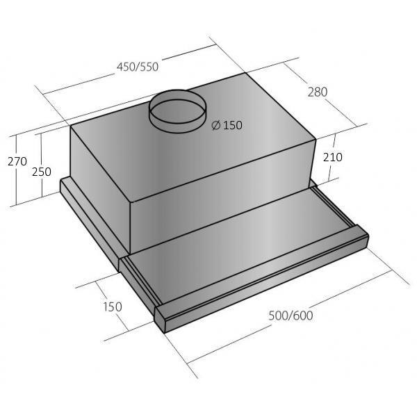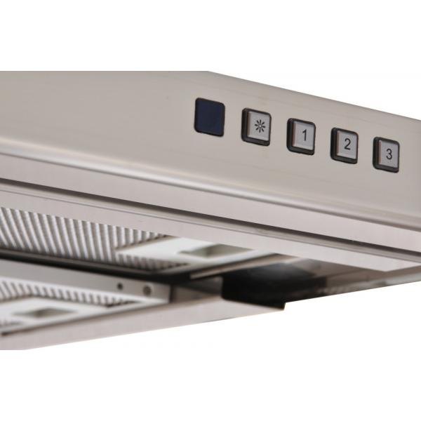 Vestavná digestoř výsuvná Šíře 60 cm, nerez s nerez lištou (bílý korpus), max. výkon 725 m³/h (5 Pa), hlučnost Lw 51 – 69 dB(A), 3 rychlosti, odsávací jednotky mají individuálně vyvažovanou turbínu, motory jsou opatřené vratnými tepelnými pojistkami (při přetížení motoru vypne, po jeho vychladnutí opět sepne), kovové sendvičové tukové filtry, které lze mýt v myčce, možnost práce v odtahovém i recirkulačním režimu. Výbava: úsporné LED osvětlení 2 × 2 W, elektronické ovládání s doběhovým časovačem, zdarma dálkový ovladač i s bateriemi, zdarma zpětná klapka. Benefity: používání dálkového ovládání usnadňuje údržbu digestoře (méně otisků na digestoři = snazší čištění), ovladač je opatřený magnetem, lze jej přichytit třeba na dveře lednice (může být snadno po ruce, nikam nezapadne)