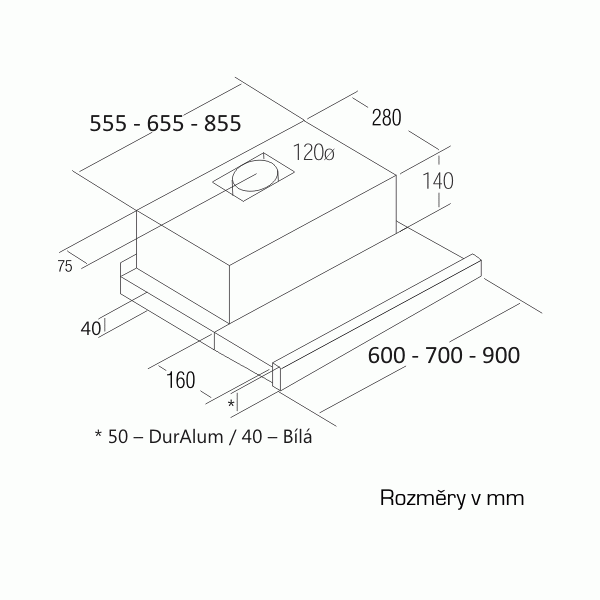 Výsuvný odsavač Cata TF 2003 DurAlum Nerez 700