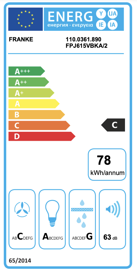 • Třída účinnosti filtrace tuků: G