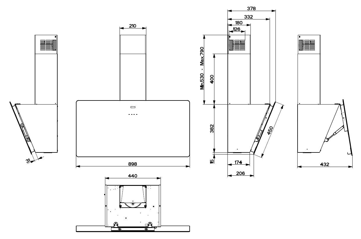 • Kategorie odsavače par: Šikmý