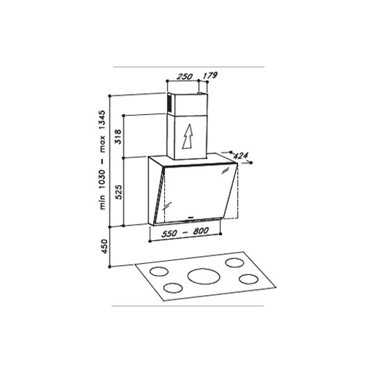chromovaná tlačítka / vestavěný motor / štěrbinové sání / bodové led diody / anodizovaný hliníkový filtr (5+1 vrstev) / vrchní odtah / časovač / 4 stupně regulace výkonu / indikace zanešených tukových filtrů / automatické vypnutí po 4 hodinách / odtah / recirkulace