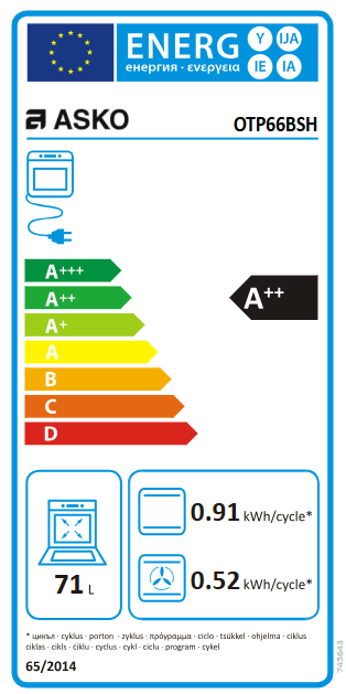 Objem trouby : 76 lEnergetická třída: A+