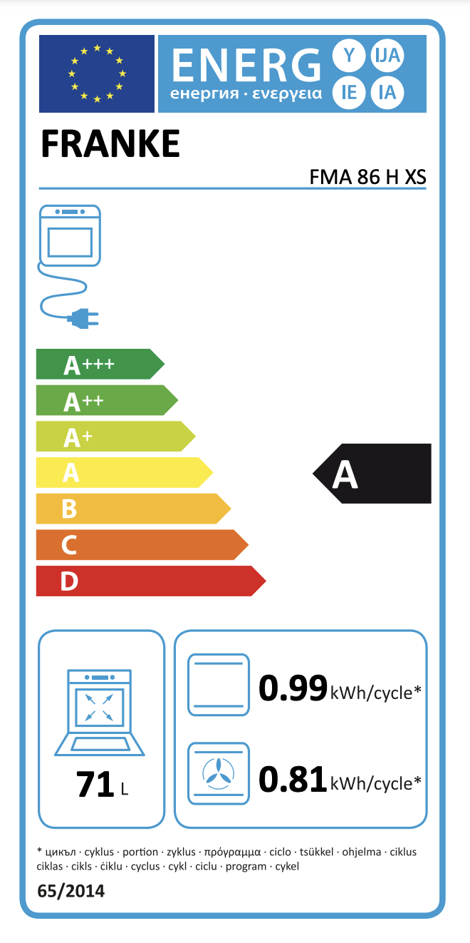 Objem trouby : 71 lEnergetická třída: A
