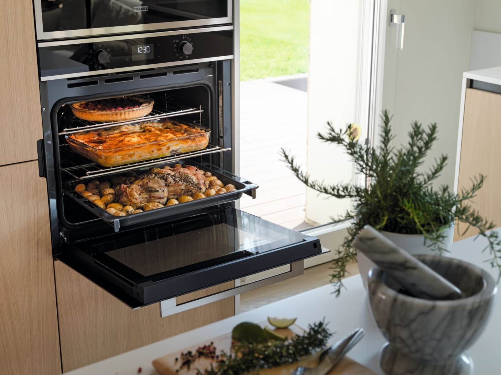• Více místa, více flexibility - Se standardními vnějšími rozměry, ale díky vnitřnímu objemu 71 litrů garantují trouby velkou všestrannost užití vnitřního prostoru. Tento velký objem přidává o cca. 20 % více prostoru, s možností umístit rošty nebo plechy až do 5 různých úrovní.
