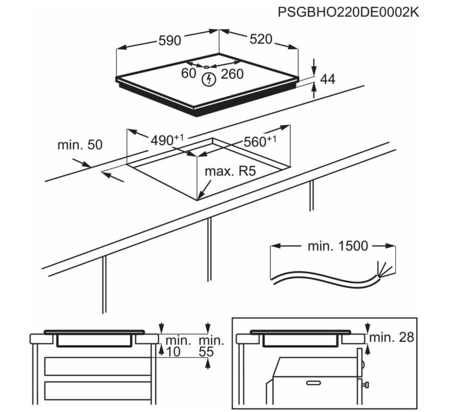 • Prostor pro instalaci VxŠxH (mm) 44x560x490