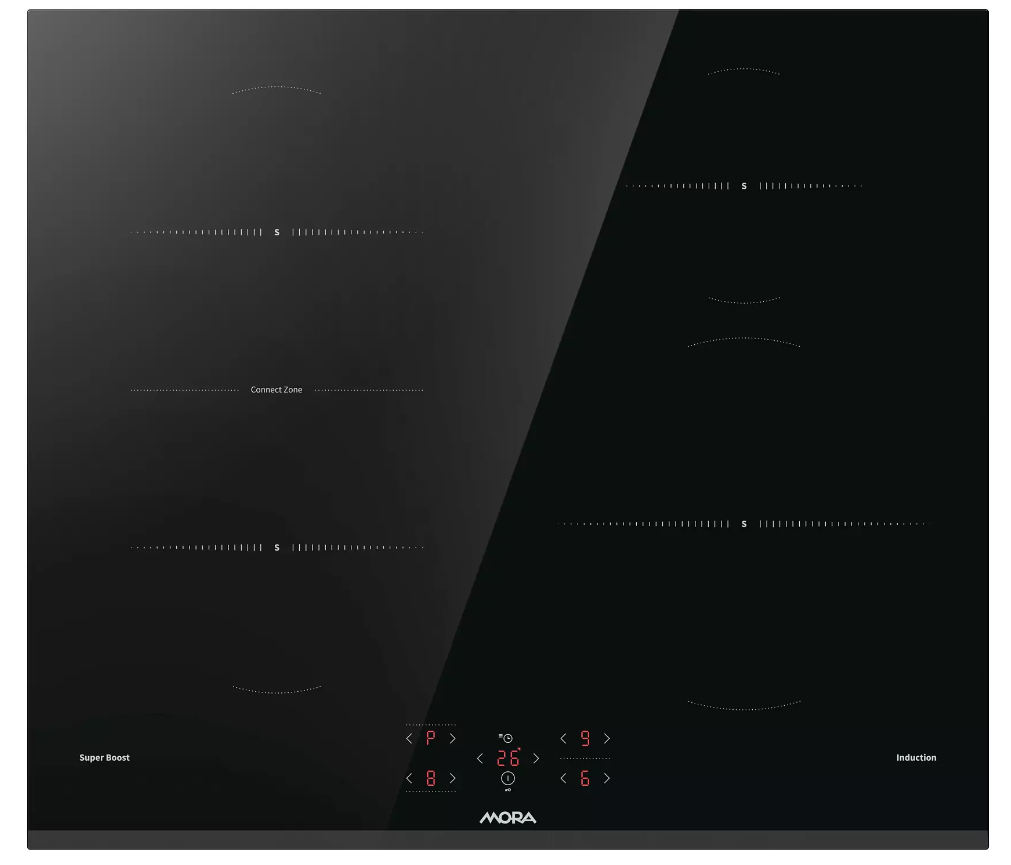 Indukční vestavná sklokeramická deska MORA VDIT 67E FF se zkosenou přední fazetou, disponuje jednou propojenou zónou ConnectZone pro zjednodušení vaření ve velkých hrncích. Dvě samostatné levé varné zóny nad sebou se jediným dotykem přemostí a spojí do jedné velké zóny, což využijete při přípravě většího množství jídla a příloh najednou. Jednou z dalších skvělých funkcí je extra výkon SuperBoost, který zvyšuje intenzitu ohřívání, pro zkrácení času, potřebného na ohřev. S funkcí Timer lze nastavit časovač vaření až na 99 minut a varná deska se po uplynutí času automaticky vypne. Doplňkem je tzv. kuchyňská minutka TimeMinutes, která je nezávislá od varných zón, takže po uplynutí nastaveného času vás jen upozorní speciální zvuk. Některá nastavení je možné přizpůsobit podle vašich preferencí, nastavit můžete délku a hlasitost zvuku nebo automatický zámek i celkový maximální výkon varné desky.