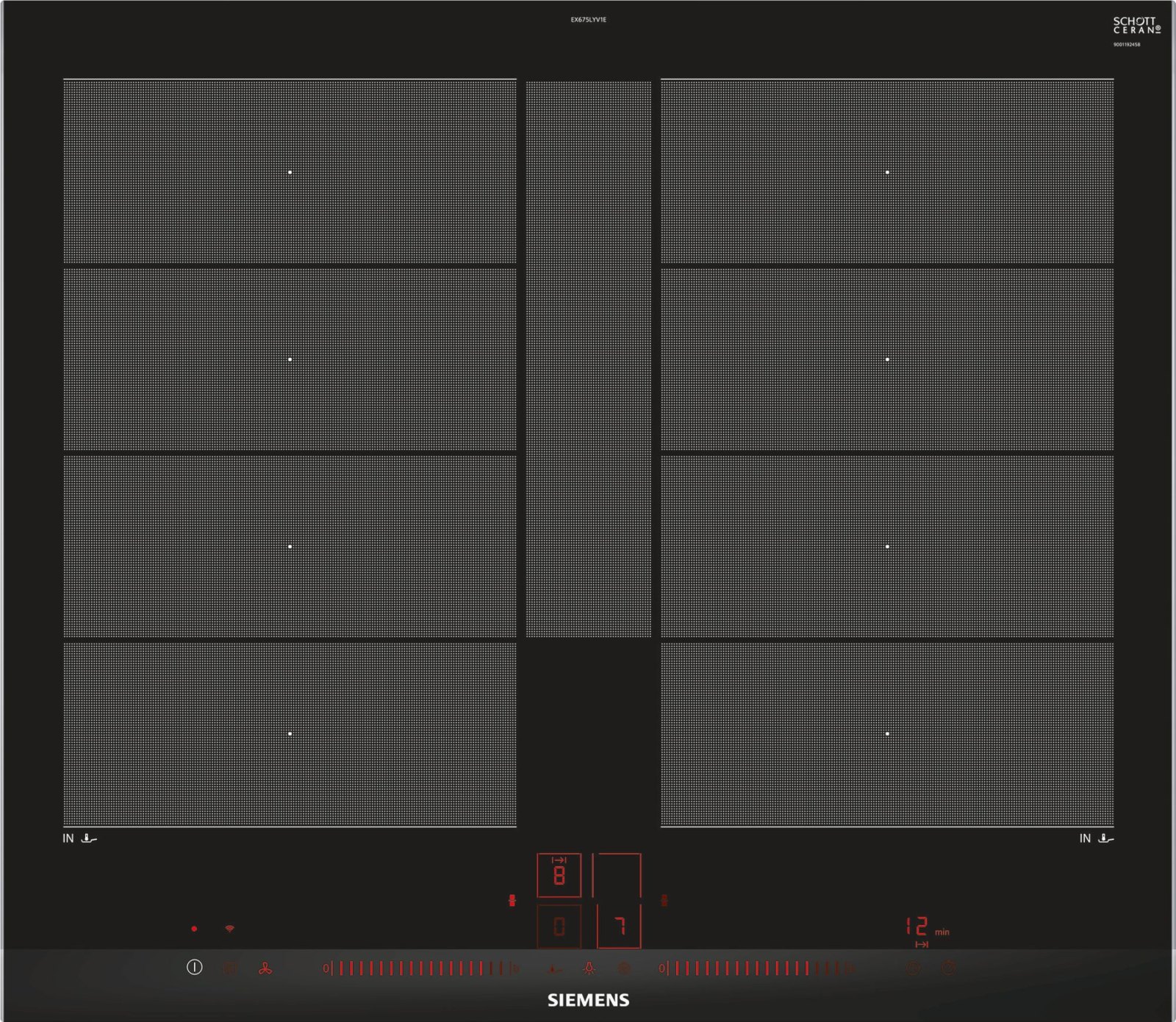 Varné zóny: 1 x Ø 380 mmx230 mm, 3.3 kW (max. výkon 3.7 kW) indukční varná zóna nebo 2 x Ø 190 mm, 2.2 kW (max. výkon 3.7 kW) indukční varná zóna; 1 x Ø 380 mmx230 mm, 3.3 kW (max. výkon 3.7 kW) indukční varná zóna nebo 2 x Ø 190 mm, 2.2 kW (max. výkon 3.7 kW) indukční varná zóna