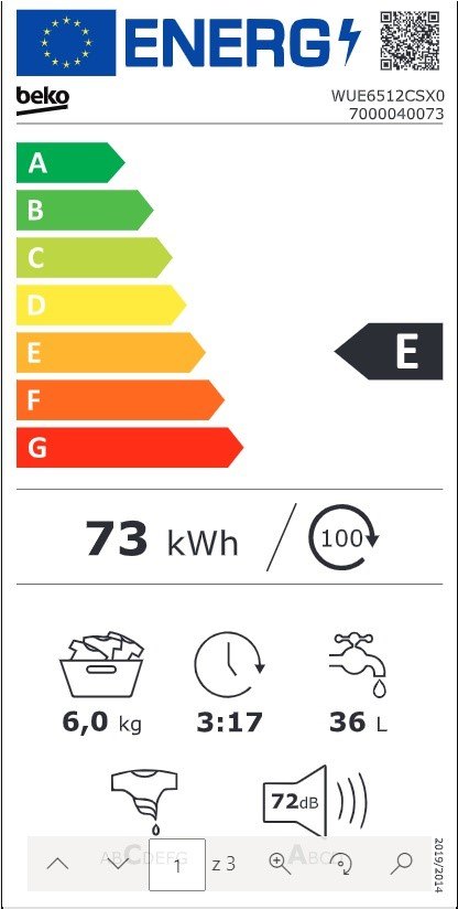 Náplň prádla max. : 6 kgEnergetická třída: EMax. otáčky / min: 1000